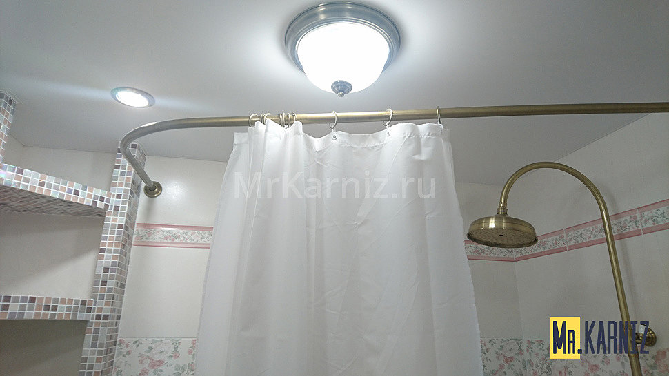 Компания Mr.Karniz производит штанги для ванных комнат, которым можно придать любую форму. Материалом таких изделий является особый вид алюминия. Часто гибкие карнизы для ванной используются в стандартных, круглых, полукруглых комнатах. Монтируются к стенам или потолку (если конструкция последнего это позволяет).