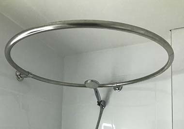 Карниз подходит для ванн любых размеров в форме эллипса или овала. Он выполнен из нержавеющей стали AISI 201 или AISI 304 с толщиной трубки 1 мм и диаметром 2.5 мм , а усиленные крепления имеют 4 отверстия для крепления к стене или потолку.
