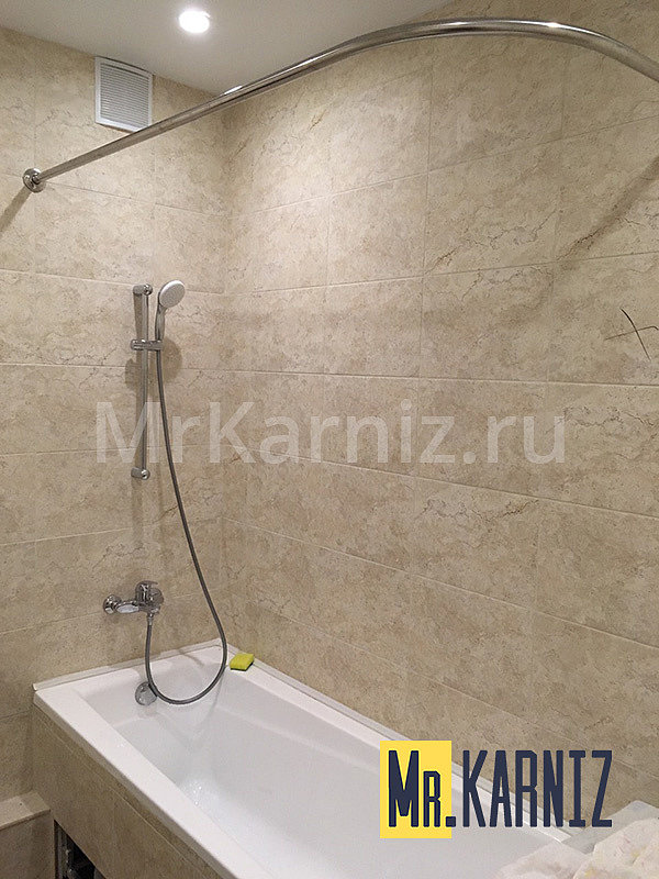 Длина цельных карнизов доходит до 3 метров. Мы поможем подобрать штангу даже для огромных ванн (вроде Santek Синтра 170х110 см).
