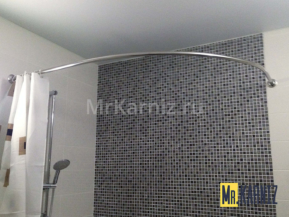 Для этого элемента декора ванной комнаты используется металлическая труба диаметром в 25 мм. Форма прямая, а длину клиент может указывать в дополнительных параметрах: от 75 см до 270 см.